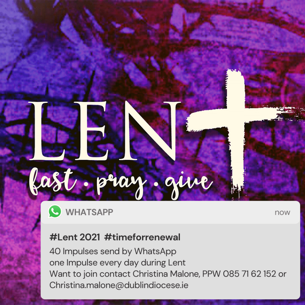 The Office for Evangelisation & Ecumenism, the Diocesan Liturgical Resource Centre and Parish Pastoral Workers to compile a list of upcoming initiatives for celebrating Lent 2021. There are resources and supports available on http://www.dublindiocese.ie and http://www.evangelisation.ie